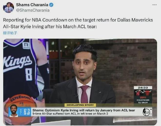 獨(dú)行俠新賽季擁有著豪華且極具深度的陣容,后衛(wèi)側(cè)翼內(nèi)線(xiàn)均有全明星級(jí)別球員壓陣,變數(shù)在于今年3月初遭遇左膝前交叉韌帶撕裂的歐文何時(shí)復(fù)出?傷愈之后是否還能恢復(fù)至巔峰狀態(tài)?據(jù)此前爆料王Shams的報(bào)道,前者或許在明年1月份王者歸來(lái)。