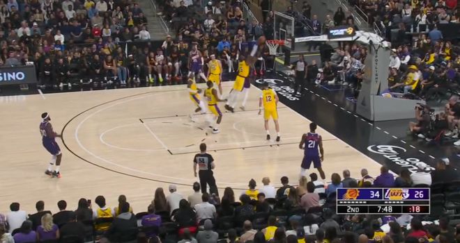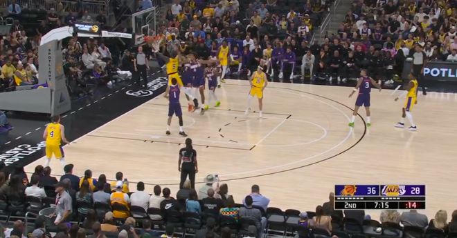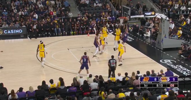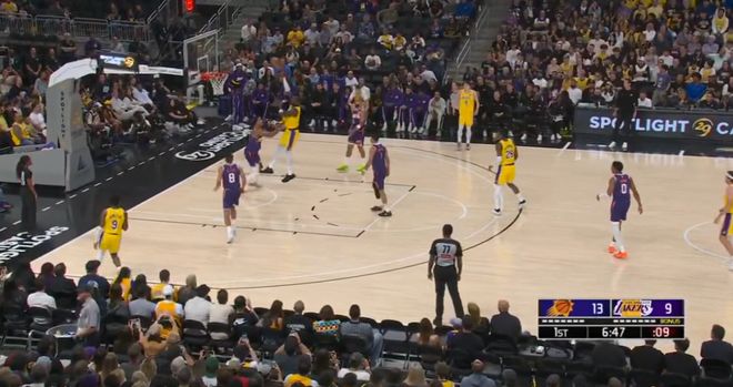 進攻端同理,這場比賽湖人少了兩個持球大核,能夠持球造成破壞的只有里夫斯一人,而且里夫斯和艾頓的默契也不高,所以艾頓無法舒服接球、開心吃餅也是正常。
