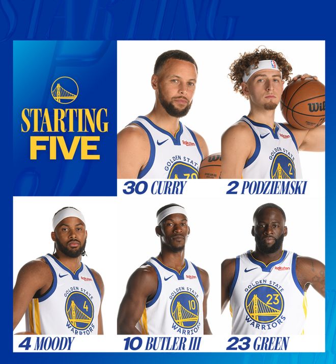 這場季前賽之前科爾在采訪中透露因為庫明加跟球隊談續(xù)約的問題,庫明加實際上跟球隊沒有進(jìn)行過完整的5V5合訓(xùn),所以庫明加并沒有得到先發(fā)的席位,科爾用了一套究極五矮,庫里、波杰、穆迪、巴特勒、追夢。