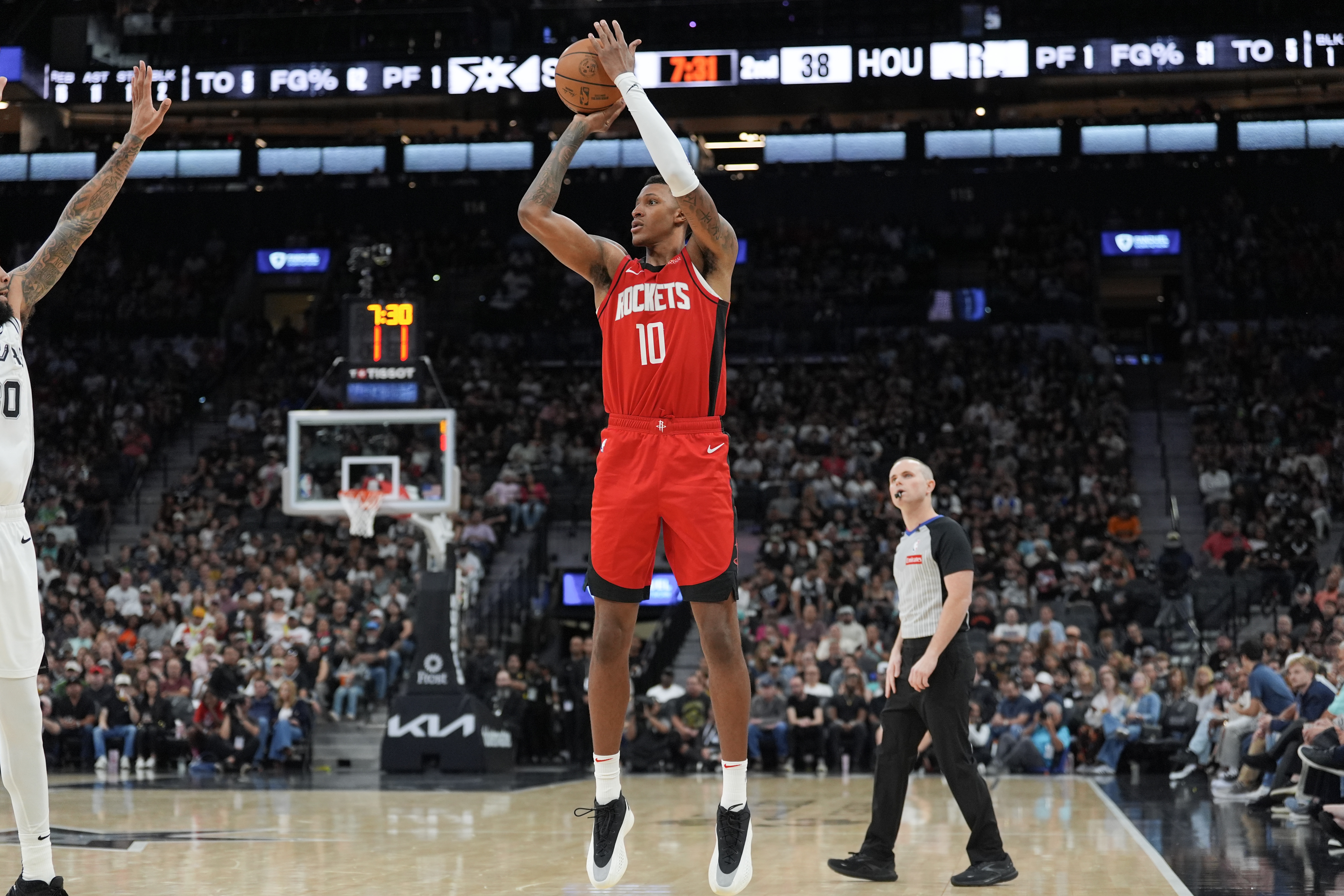 此役火箭前鋒小賈巴里-史密斯外線手感不錯,打了32分鐘13投5中,三分10中5、罰球7中5拿到全隊最高20分外加7籃板1蓋帽。