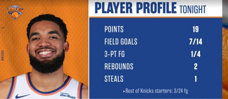 瞎打!唐斯半場(chǎng)19分 其余尼克斯首發(fā)24中3共得11分