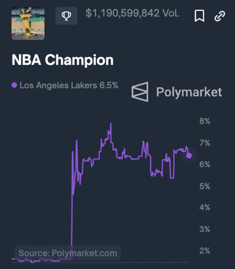 2月7日訊 NBA交易截止日已過,據(jù)博彩網(wǎng)站信息,湖人在交易截止日前奪冠賠率為+5782,目前暴漲至+270(押100,若中則連本帶利返還370),目前奪冠概率為6.5%。