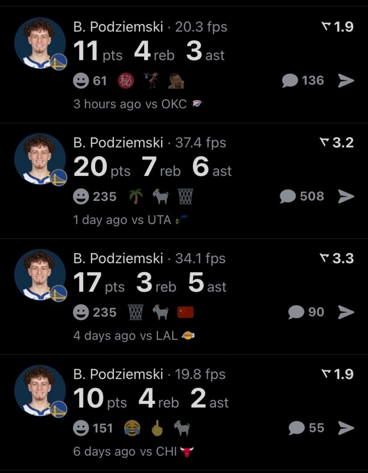 在傷愈復出后的四場比賽中,波杰姆斯基表現(xiàn)都挺好,他場均14.5分4.5籃板4助攻。