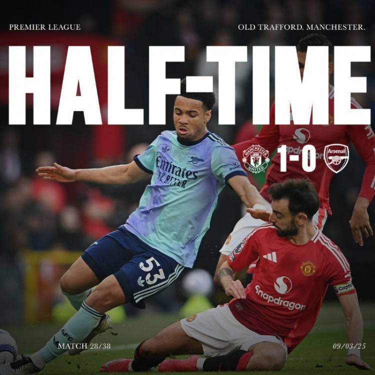 3月10日訊 本輪英超焦點(diǎn)戰(zhàn),曼聯(lián)在主場(chǎng)上半場(chǎng)1-0領(lǐng)先阿森納。