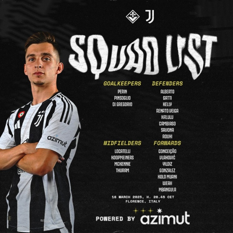 3月16日訊 周一凌晨1點(diǎn)意甲第29輪,尤文客場對陣佛羅倫薩。賽前尤文公布了本場比賽的大名單,小孔塞桑、薩沃納傷愈回歸。