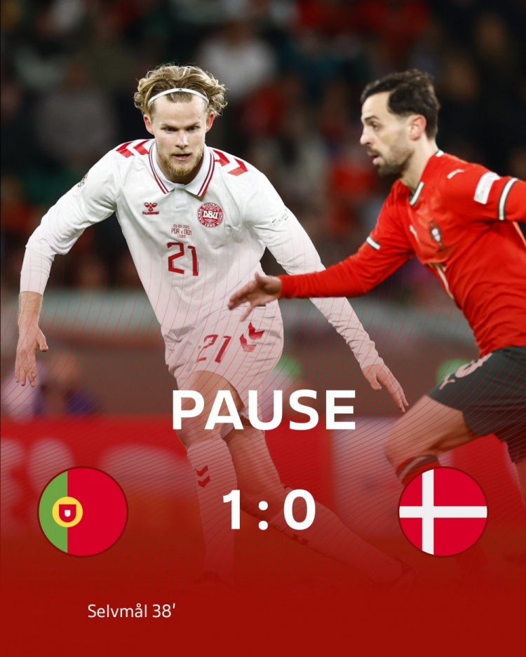 3月24日訊 北京時間3月24日03:45,歐國聯(lián)八強戰(zhàn)次回合葡萄牙迎戰(zhàn)丹麥的比賽在阿爾瓦拉德球場進(jìn)行,上半場C羅開場造點+點射被撲,達(dá)洛特頭球造險,B費角球造安德森解圍自擺烏龍,半場結(jié)束,葡萄牙1-0丹麥。