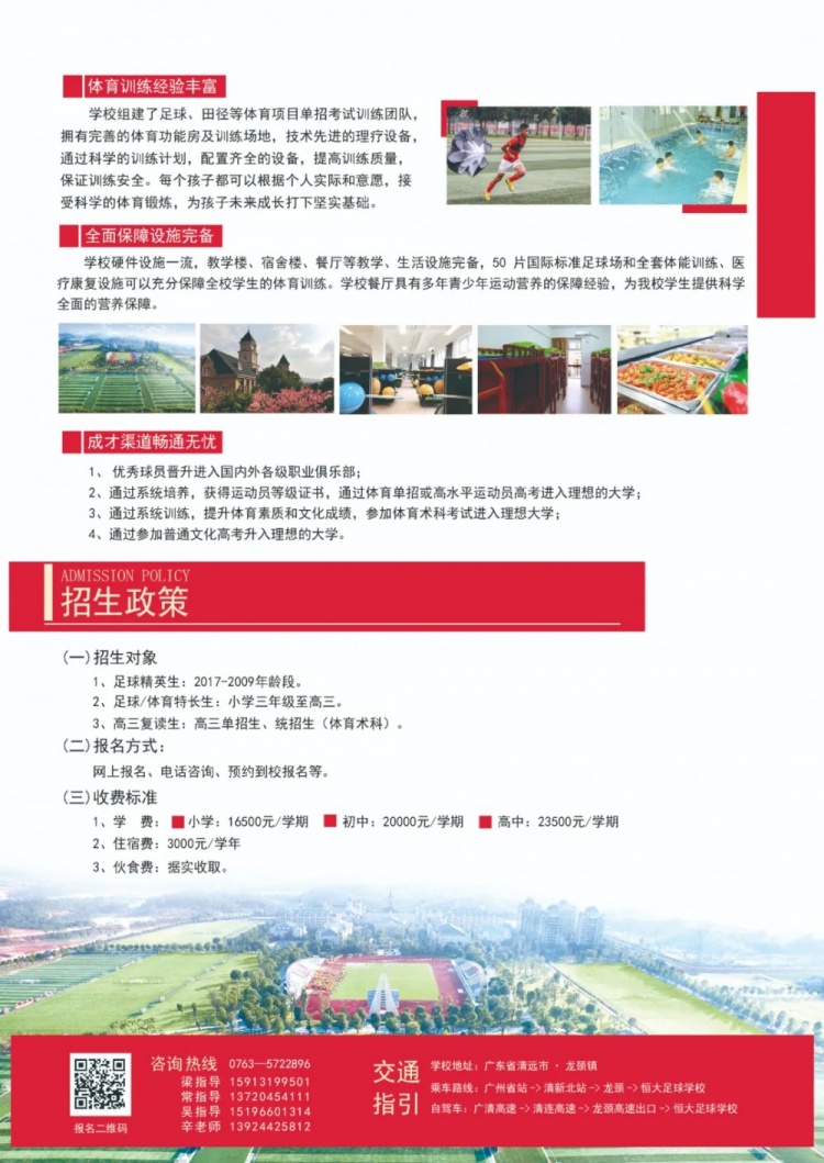 3月26日訊 恒大足球?qū)W校官方發(fā)布2025全國招生簡章,招生對象包括足球精英生、足球/體育特長生等。