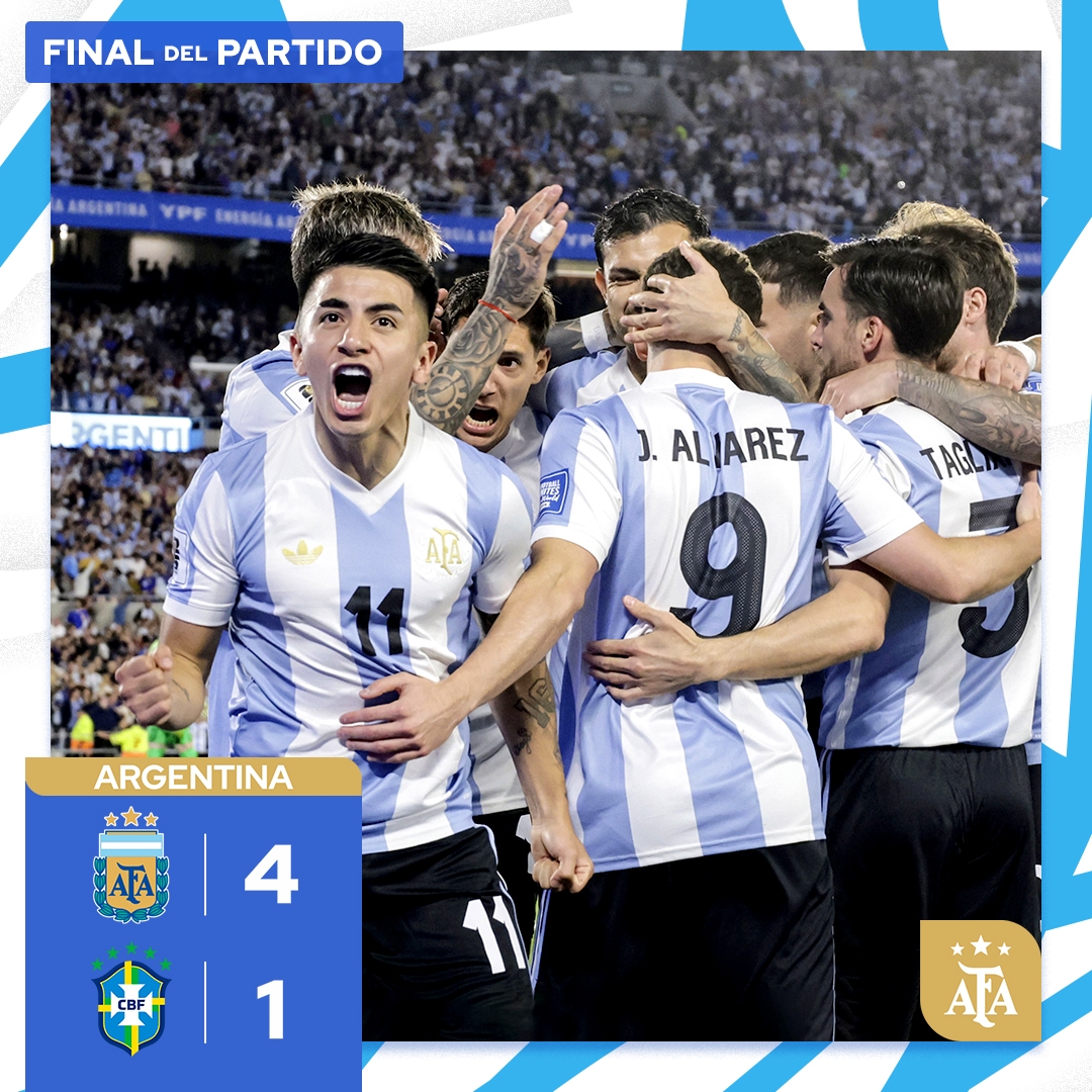 這也是巴西隊首次在世預賽兩回合均不敵阿根廷。這是自1964年以來巴西隊首次以三球及以上分差不敵阿根廷隊,而兩隊交鋒史上最懸殊比分要追溯到1940年的友誼賽,當時巴西1-6慘敗。