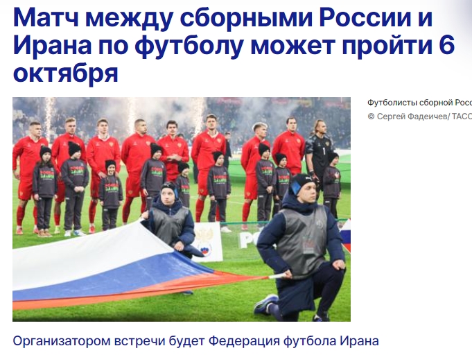03月27日訊 俄羅斯塔斯新聞社消息,俄羅斯將于10月6日與伊朗進行友誼賽。