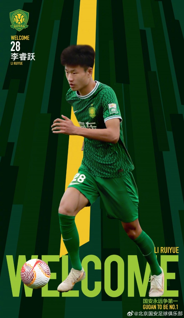 李睿躍正式加盟北京國(guó)安足球俱樂(lè)部,他將身披28號(hào)球衣,代表北京國(guó)安出戰(zhàn)本賽季中超聯(lián)賽、亞冠聯(lián)賽、足協(xié)杯等各項(xiàng)賽事。 李睿躍出生于2006年5月15日,身高192cm,體重79kg,司職中場(chǎng)。