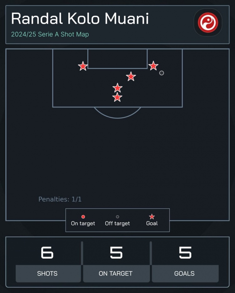 高效!穆阿尼為尤文3場打進(jìn)5球,共計(jì)僅6次射門6次射正
